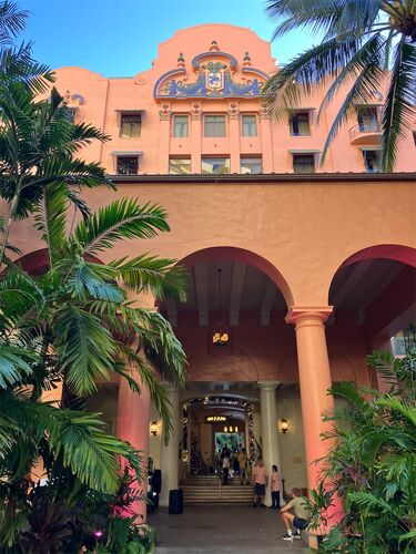 ハワイを訪問していた親戚のリクエストで、ロイヤルハワイアンホテルで朝食を食べてきました。 ワイキキのロイヤルハワイアンセンターからさらに海側にいったところにあるピンク色のホテルです。 ピンクのクリスマスツリーがお出迎え。 こちらはピンク色がテ…